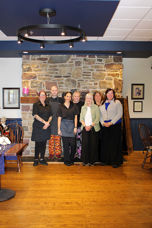 Carriage House Inn celebrates its 40th Anniversary (from left, front row) Theresa Karsteter, Kaylee Bisvnieks, Owner Sharon Hance, Manager Kristy Shriner; (back row) Chef Anthony Collins, Teresa Vaughn, and Tina Kuhn.