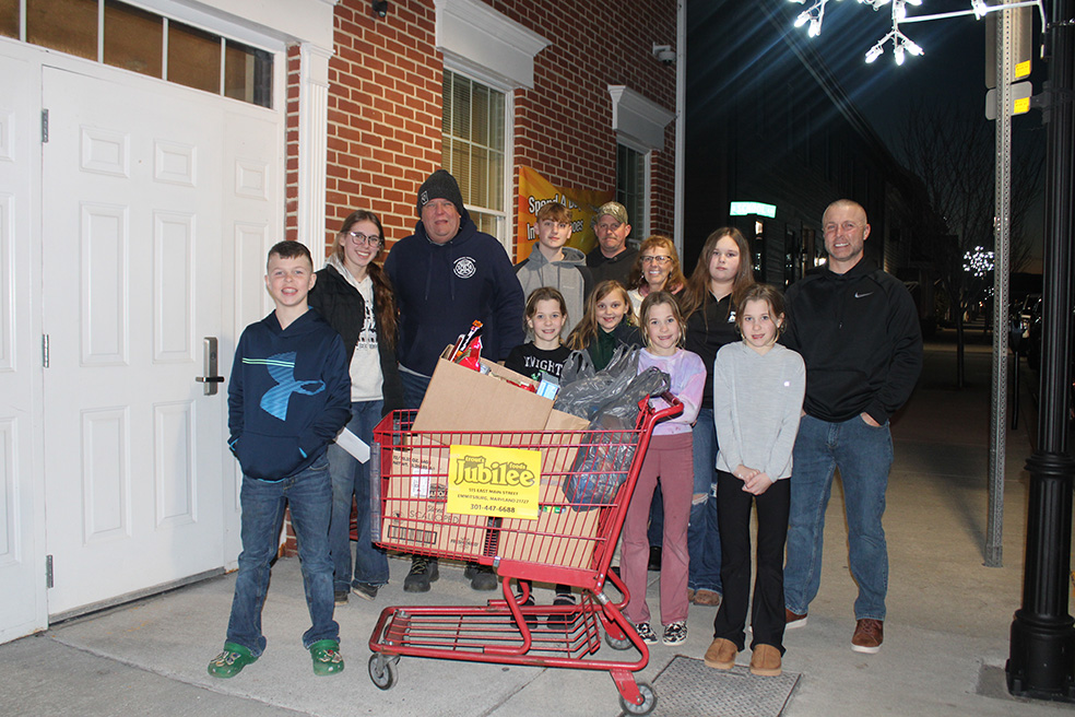The Rocky Ridge Youth Association stopped by to give both a monetary donation and non -perishable food items to the Emmitsburg Food Bank as part of “A Day In Their Shoes” challenge from the Emmitsburg Mayor Frank Davis.