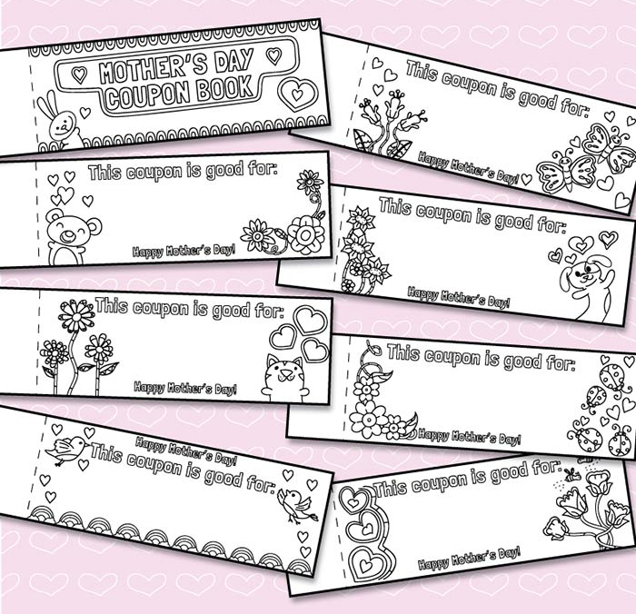 What mother wouldn’t love a coupon for a big hug? Give Mom a book of coupons that she can redeem at any time for one big hug, to help her with a chore, to walk the family pet, to clean your room without being asked, a day of no complaining, a free car wash, breakfast in bed, help with the dishes, work with Mom in her garden, Mom gets to choose her favorite meal for dinner (made or ordered by the family)….the list is endless! Get creative thinking of ideas for Mom. Mother’s Day coupons are a thoughtful and creative way for kids to show their appreciation and gratitude! There are many different free printable templates available online for Mother’s Day coupons that kids can color and personalize. Or, kids can make and decorate their own coupons with colored construction paper or regular paper, cut into wide strips and stapled together at one end.