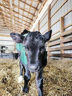 We have had a second calf born at the end of February. Sadly, this calf came out dead, and we were able to get a replacement calf in time for the mother. The calf we got came from a dairy farm and is a Holstein-Angus mix. The way we were able to make sure the mother would accept this calf was by rubbing her old calf’s scent on the new calf. We took a calf blanket and made sure to get that scent all over the blanket, so the mother wouldn’t be able to smell the other calf as well. Many people will skin the dead calf and put it on the replacement, but we tried a different way. And our way ended up being a success, and both of them are happy and healthy.