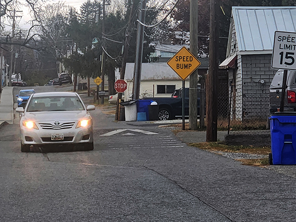 Some of the existing signage and calming measures on W. Lincoln Avenue in Emmitsburg.