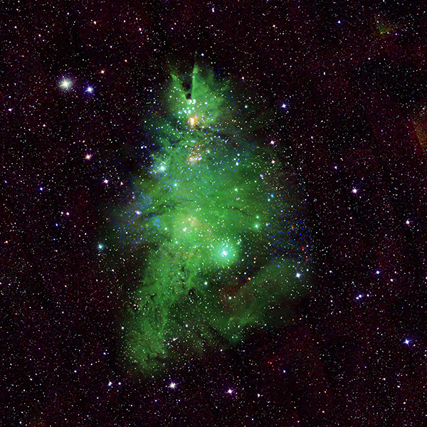 In the United States of America, one of the first recorded celebrations of Christmas was at Jamestown in 1607. In 1870, Christmas became a federal holiday in the United States. In recent years, Christmas and astronomy still coexist. The “Christmas Star” conjunction of Jupiter and Saturn back in 2020 showed us a rare conjunction of the two planets, making them appear as a very bright “star” in the sky. As this was right around Christmas, and brought the planets to appear closer than they had in nearly 800 years, it was dubbed the “Christmas Star.” More recently, as of 2023, NASA released striking images of a star cluster, some 2,500 light years away. They dubbed this cluster the “Christmas Tree Cluster” or its official name, “NGC 2264” (pictured above). The 14 stars in this cluster flicker due to gravitational lensing, making it appear like twinkling lights on a Christmas tree. Gravitational lensing occurs due to massive objects in space warping spacetime. The object’s light from the background of the curvature causes the light path to bend, and in the case of the Christmas Tree Cluster, distort. If you want to see this cluster for yourself, the winter months are a great time to do so. It can be found in the constellation of Monoceros, which is near the constellation of Orion and the red giant Betelgeuse.