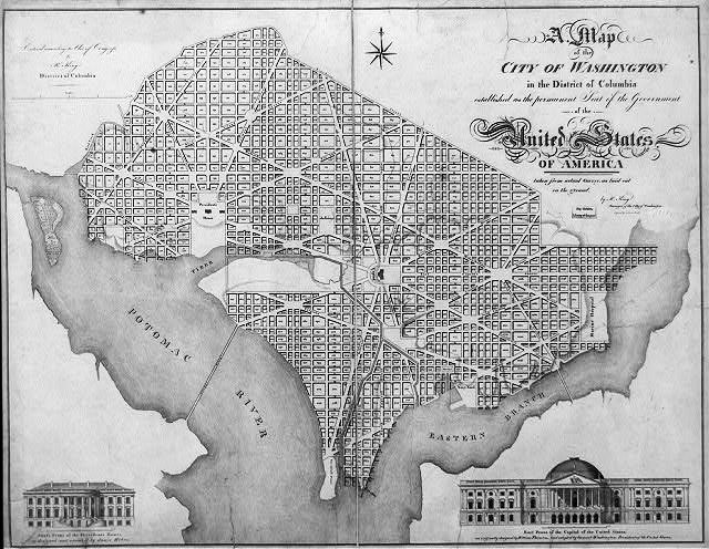 On January 24, 1791, President Washington issued a proclamation fixing the boundaries of the new federal district. The capital would be a square, measuring ten miles on each side, although oriented on a map, it would appear in the shape of a diamond. It was also the furthest south location in the range along the Potomac Congress set. Many in Congress had wanted a location further upriver, but what they didn’t realize was that Washington and his family owned thousands of acres in the district. Although no one accused Washington of making his decision for his own self-interest, he certainly benefited from it.