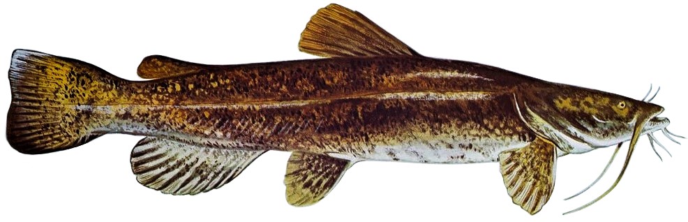 The Flathead Catfish is another non-native predator, originally from the Mississippi River basin. Unlike Blue Catfish, flatheads prefer live prey and are often found in deep holes and slow-moving waters, where they feed on American eels, American shad, river herring, sunfishes, crustaceans, and other native fish. They are particularly harmful to sunfish and bass populations. These catfish can grow up to 100 pounds and are the second-largest catfish in North America.