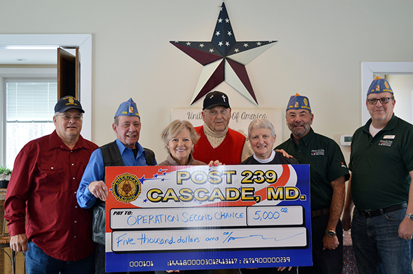 Members of Squadron 239 Sons of the American Legion in Cascade visited Heroes Ridge at Raven Rock to present a donation to Operation Second Chance on Saturday, January 10. Squadron 239 is very active in the community, annually raising more than $50,000 to donate to Veterans and various community organizations. To raise this money, the squadron runs bingo (open to the public) at Post 239 on the first Sunday of most months.