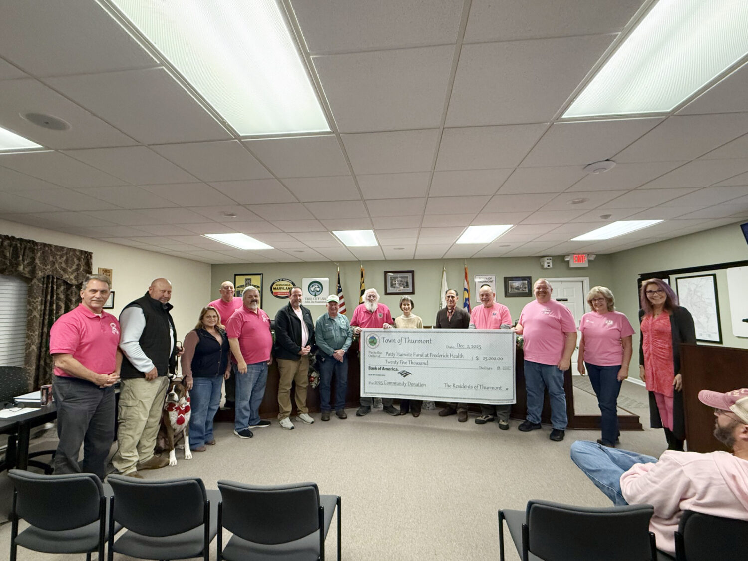 At a recent Town of Thurmont meeting, Patty Hurwitz was present to receive a check in the amount of $25,000 from the proceeds raised through a variety of Gateway to a Cure events, including a 5K, a golf tournament, and a pub crawl, just to name a few.