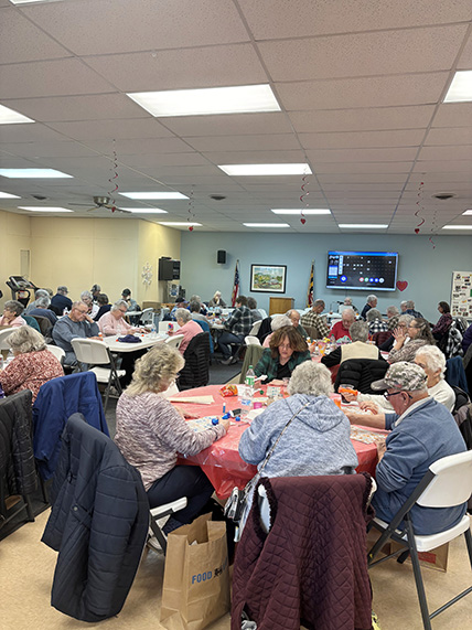 February was an enjoyable month. We had busy lunches, and we also delivered a lot of lunches.We had two great Bingos. We stretched and exercised. We played Farkle, Hand and Foot, Pinochle, and Poker. We laughed and laughed. We also had coffee, tea, and goodies, galore. We held our monthly birthday party, where we had cake and ice cream and celebrated everyone who had a February birthday. You just never know how much fun you can have. We would love for you to join us for some fun and fellowship.